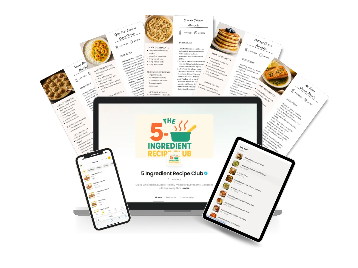 Get immediate access to a growing library of delicious, 5-ingredient recipes that take 20 minutes or less. No fluff, no fancy tools—just real meals for real life.